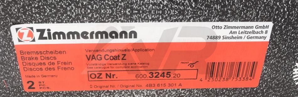 - ZIMMERMANN 600.3245.20 подходит к маркам/моделям авто: