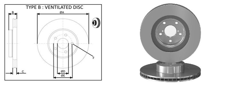 Тип гальмівного диска: вентильований