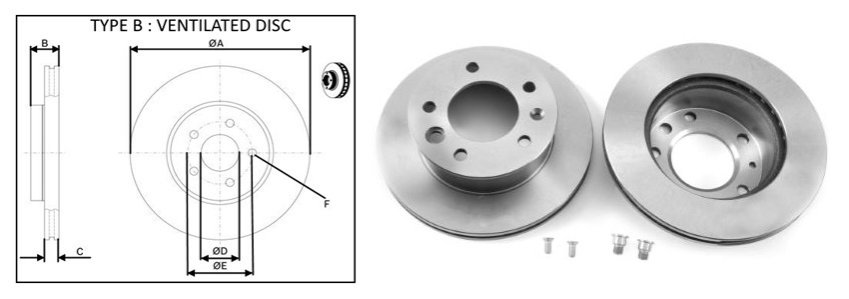 Тип гальмівного диска: вентильований