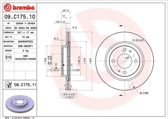 Диск гальмівний BREMBO 09.C175.11