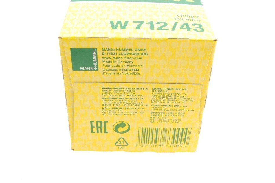 Фільтр масляний -FILTER MANN W 712/43
