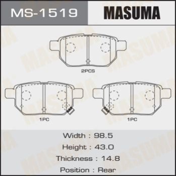 Колодки гальмівні задні Toyota Auris (08-12), Corolla (08-16), Prius (09-), Yaris (05-10) (MS-1519) MASUMA MS1519