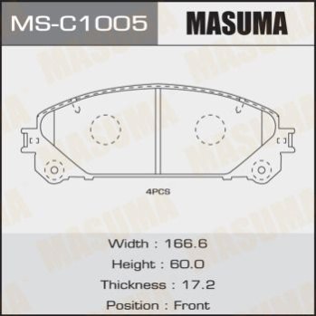 Колодки гальмівні передні Lexus NX 300 (17-), RX 350 (08-)/ Toyota Highlander (13-) (MS-C1005) MASUMA MSC1005