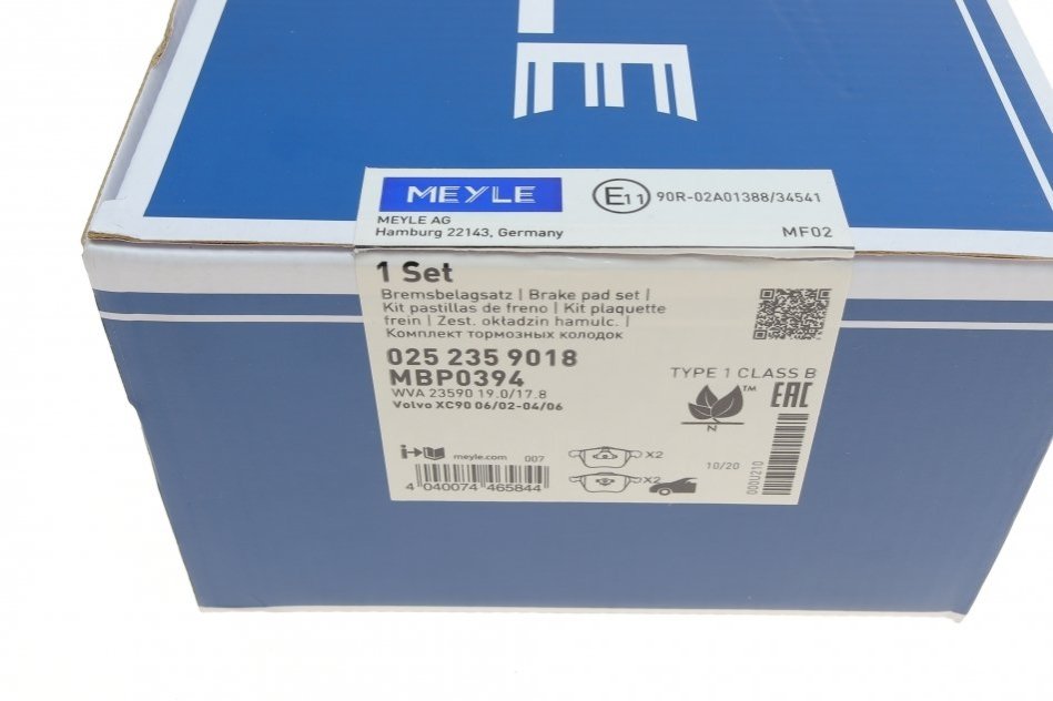 Комплект гальмівних колодок MEYLE 025 235 9018