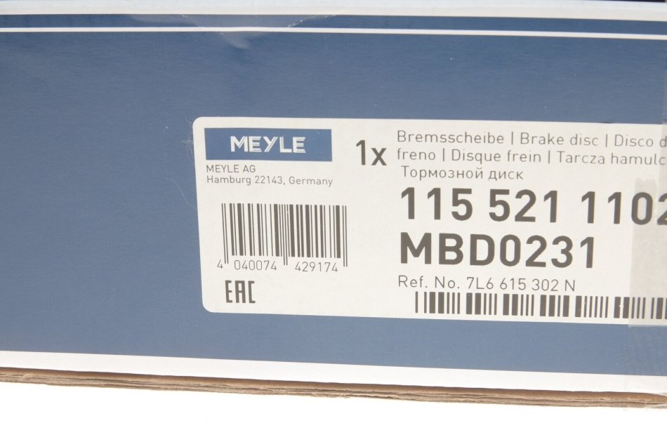 Диск гальмівний MEYLE 115 521 1102