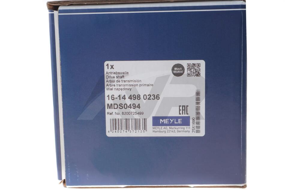 Піввісь (передня) (L) Renault Megane 1.5 dCi/1.6 16V 08- (25z/26z/688mm) МКПП MEYLE 16-14 498 0236