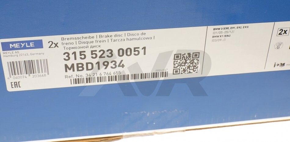 Диск гальмівний MEYLE 315 523 0051
