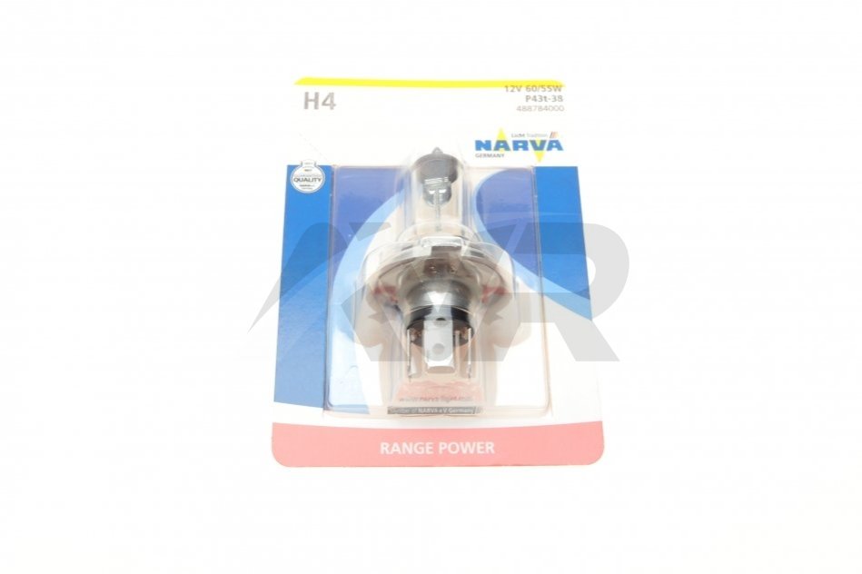 Автолампа H4 12V 60/55W P43t Range Power (+30%) (блістер/ 1шт) NARVA 488784000