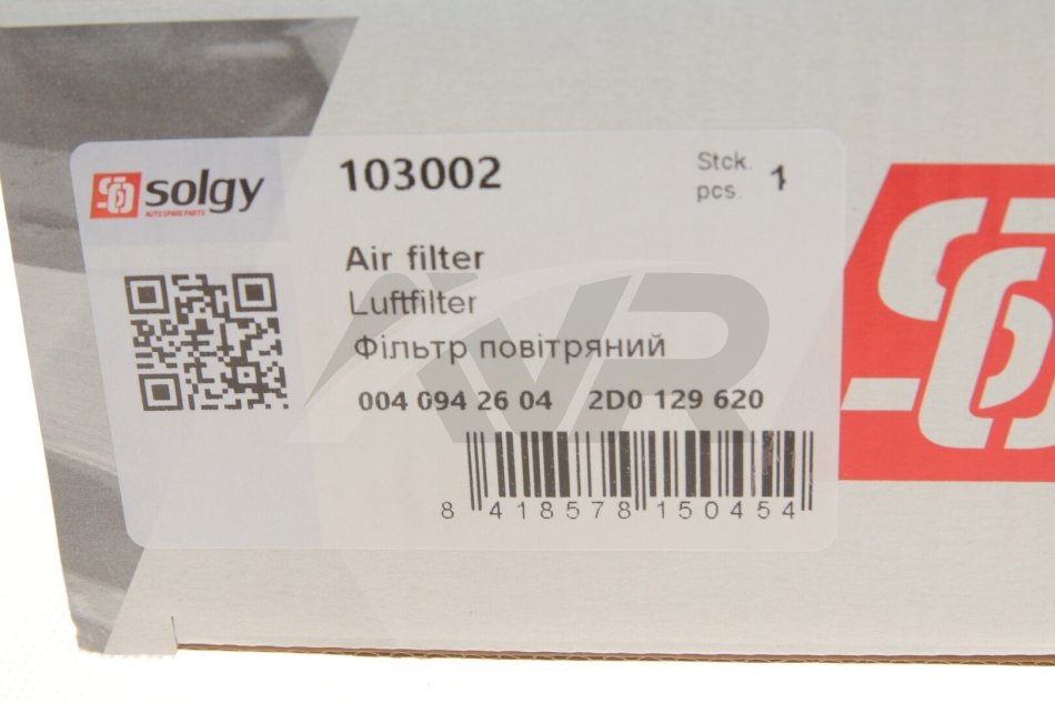 Елемент фільтруючий очищення повітря Solgy 103002