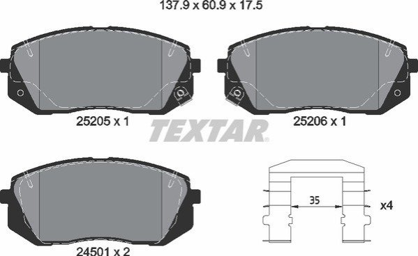 - TEXTAR 2520501 підходить до марок/моделей авто: