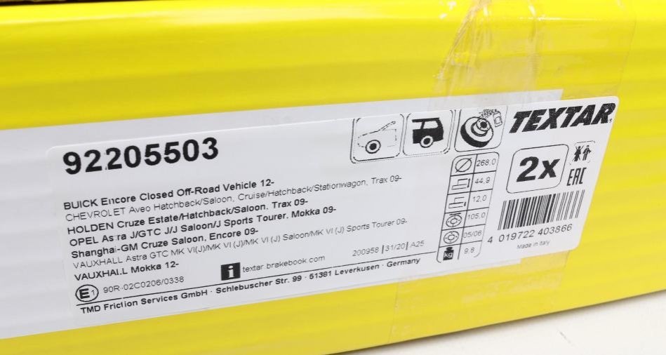 - TEXTAR 92205503 підходить до марок/моделей авто: