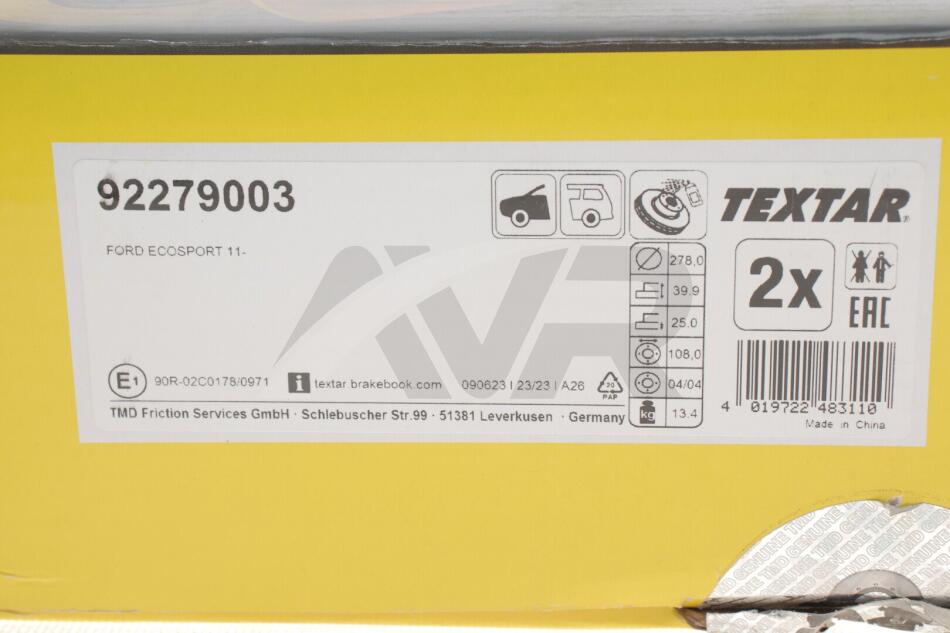 - TEXTAR 92279003 підходить до марок/моделей авто: