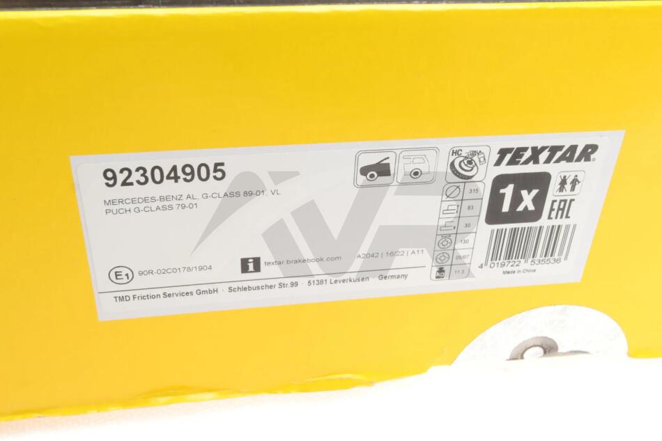 - TEXTAR 92304905 підходить до марок/моделей авто: