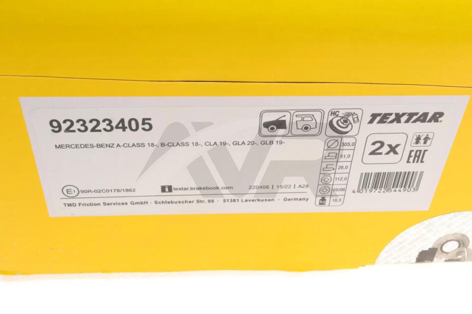 - TEXTAR 92323405 підходить до марок/моделей авто: