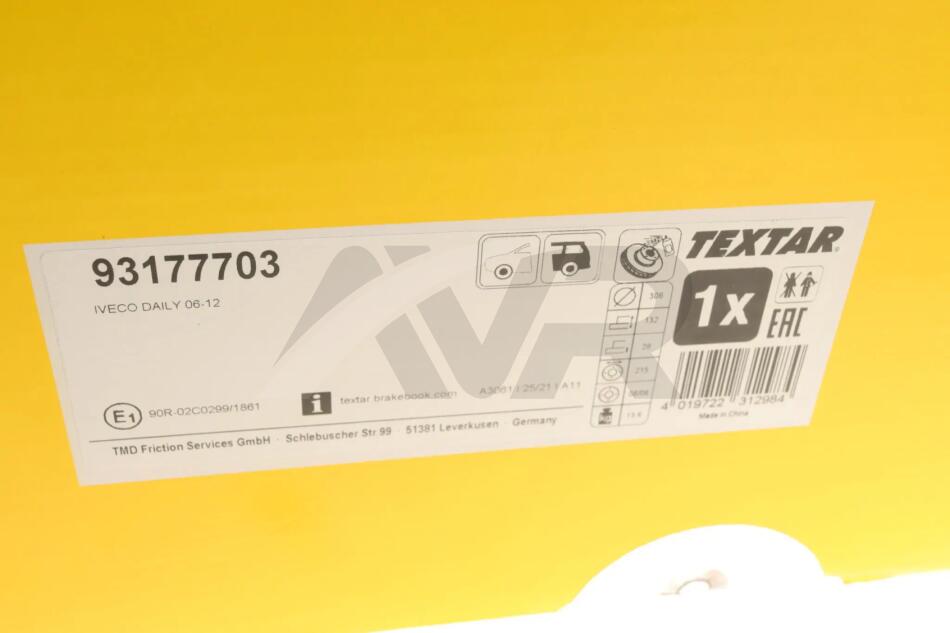 Диск гальмівний IVECO Daily "R D=306mm \'\'06>> TEXTAR 93177703