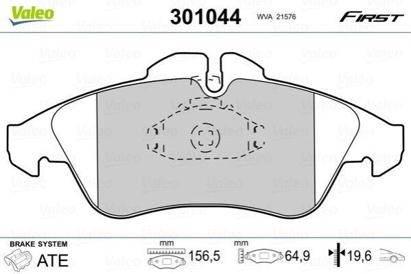 Гальмівні колодки дискові MB/VW Sprinter/V-Class/Vito/LT "2,0-2,9 "F "95-06 Valeo 301044