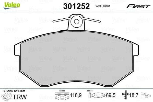Гальмівні колодки дискові SEAT/VW Cordoba/Ibiza/Toledo/Caddy/Golf/Passat/Vento "1,4-2,9 "F "88-04 Valeo 301252