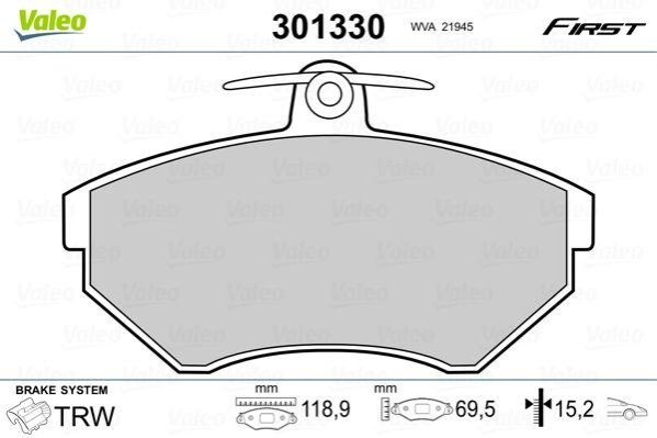 Гальмівні колодки дискові VAG Cordoba/Ibiza/Toledo/Caddy/Golf/Jetta/Passat/Vento "1,4-2,2 "F "84-04 Valeo 301330