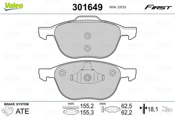 Гальмівні колодки дискові FORD/MAZDA/VOLVO Focus/Kuga/3/5/C30/C70/S40/V40/V50 "1,0-2,5 "F "03>> Valeo 301649