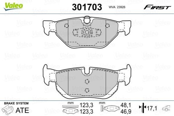 Гальмівні колодки дискові BMW 1/3/X1 "1,6-3,0 "R "03-15 Valeo 301703