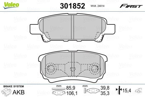 Гальмівні колодки дискові CHRYSLER/CITROEN/DODGE/MITSUBISHI/PEUGEOT Lancer/4008 "1,3-2,4 "R "03>> Valeo 301852