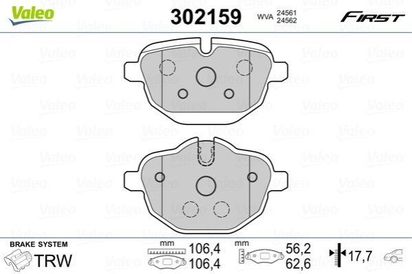Гальмівні колодки дискові BMW 5/7/i8/X3/X4/Z4 "1,5-3,0 "R "08>> Valeo 302159