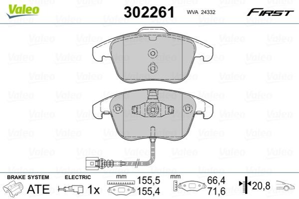 Гальмівні колодки дискові AUDI Q3 "1,4-2,0 "F "11-18 Valeo 302261