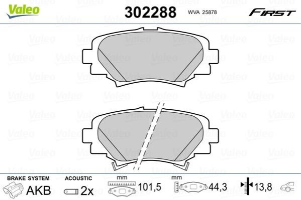 Гальмівні колодки дискові MAZDA 3 "1,5-2,2 "R "13>> Valeo 302288