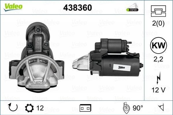 Стартер (12В, 2,2кВт, новий із заставою) CITROEN JUMPER II FIAT DUCATO FORD RANGER, TOURNEO CUSTOM V362, TRANSIT, TRANSIT CUSTOM V362, TRANSIT TOURNEO, TRANSIT V363 2.2D/2.4D/3.2D 04.06- Valeo 438360